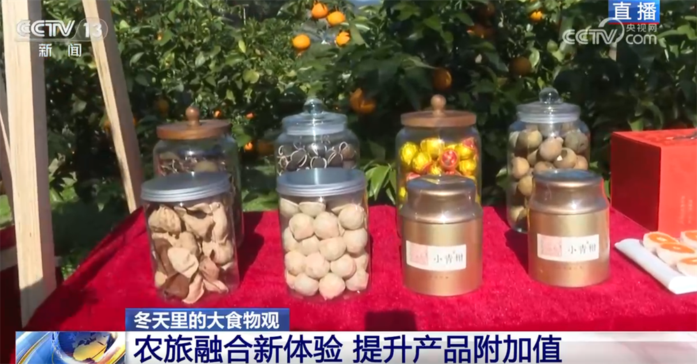除了鲜果销售,当地还将柑橘产业与乡村旅游相结合,游客可以沉浸式体验采摘乐趣、品尝新鲜柑橘、了解柑橘文化,形成“春赏花、夏避暑、秋采摘、冬品果”的四季旅游体验。大家看,记者面前的桌上就摆放有各式各样以“柑橘”为主题的文创产品和食品,有钥匙扣、台灯、香薰等等,还有以柑橘为原料制作成的特色休闲食品。同时,果农们没有满足于单纯卖鲜果,而是延伸了产业链,制作成了小青柑、陈皮等产品,提升了附加值。