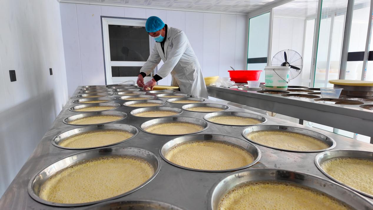 在库伦旗六家子镇沙尔塔拉嘎查包老奶制品加工厂,村民席乌力吉包老与2名工人正忙着制作奶豆腐,为次日供应旗内各大商超做准备。席乌力吉包老从事奶制品加工多年。2024年,他依托奶业振兴暨中小规模养殖场提升改造项目,新建标准化厂房、购置5台奶制品加工设备,对原有作坊进行全面改造升级,并开设了三家线下门店。
