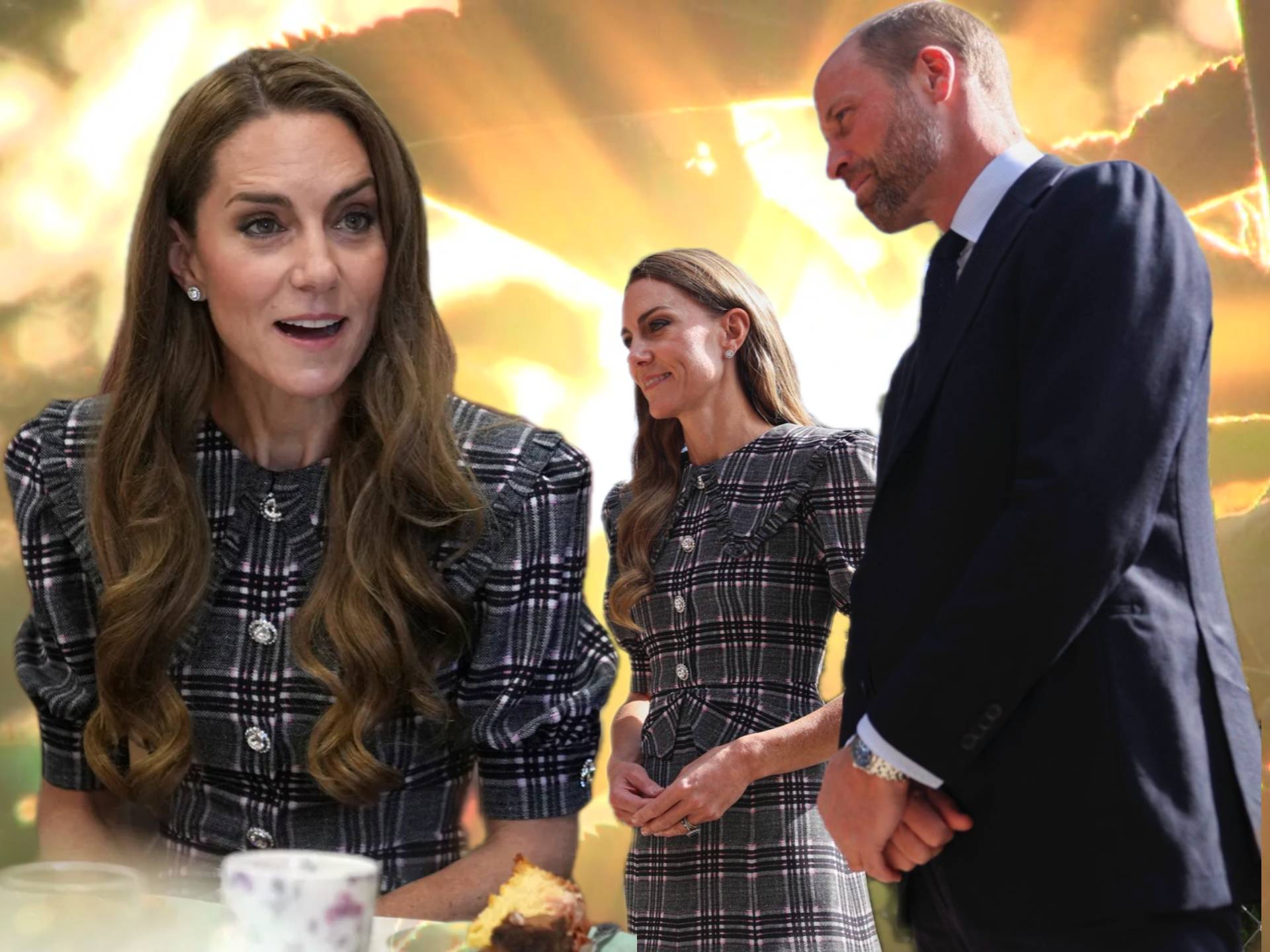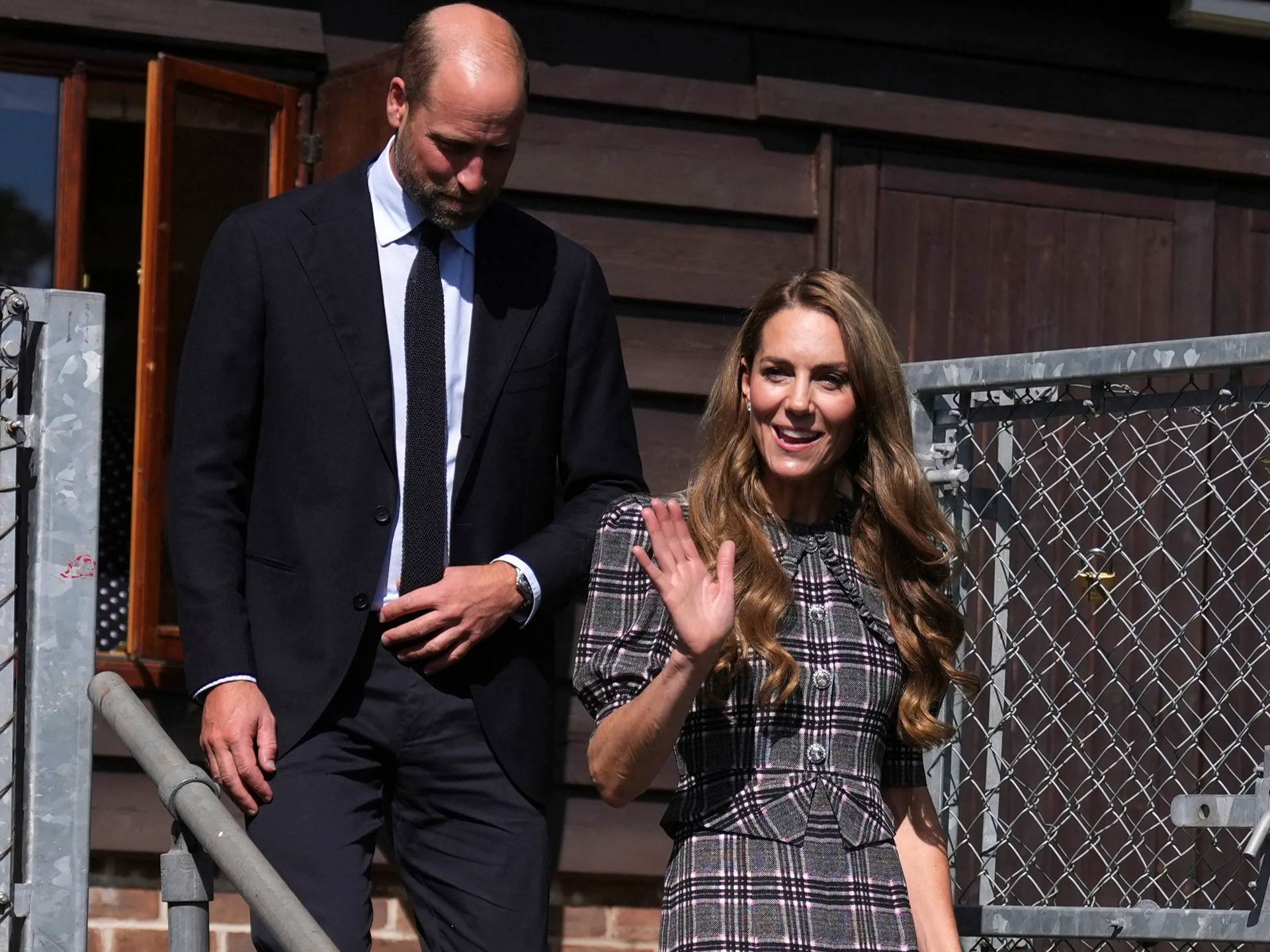 Wales夫妇参加了在Sunningdale,举行的全国妇女联合会(WI)活动,女王生前曾是WI的资深成员。在这场充满哀思的活动中,凯特身着一件带有超大领子的Alessandra Rich格子连衣裙,显得格外引人注目。