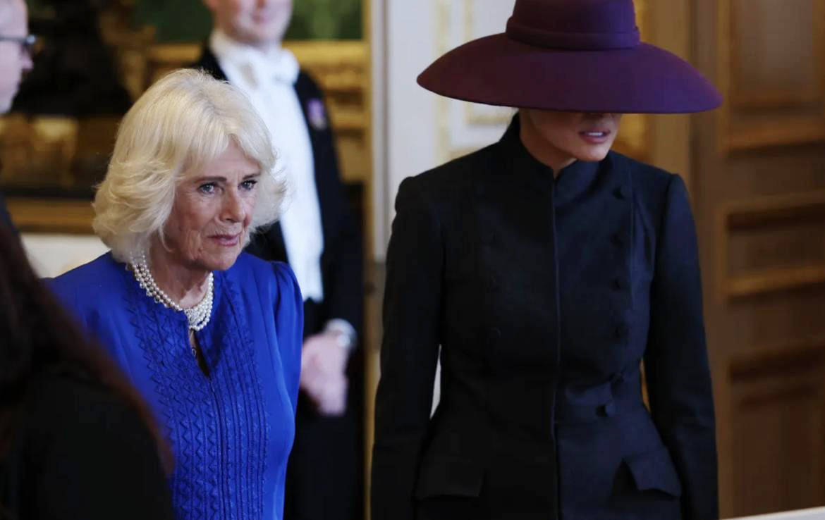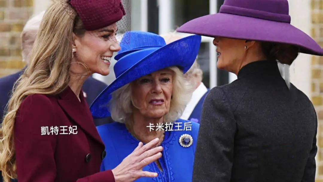英式隆重场合的穿搭,从不缺 “象征性细节”。此次特朗普访英,卡米拉与凯特的着装颜色被英媒解读为 “服装外交”:卡米拉的深蓝色与凯特的白色,恰好是美国国旗的配色,被视为 “对特朗普的示好”。