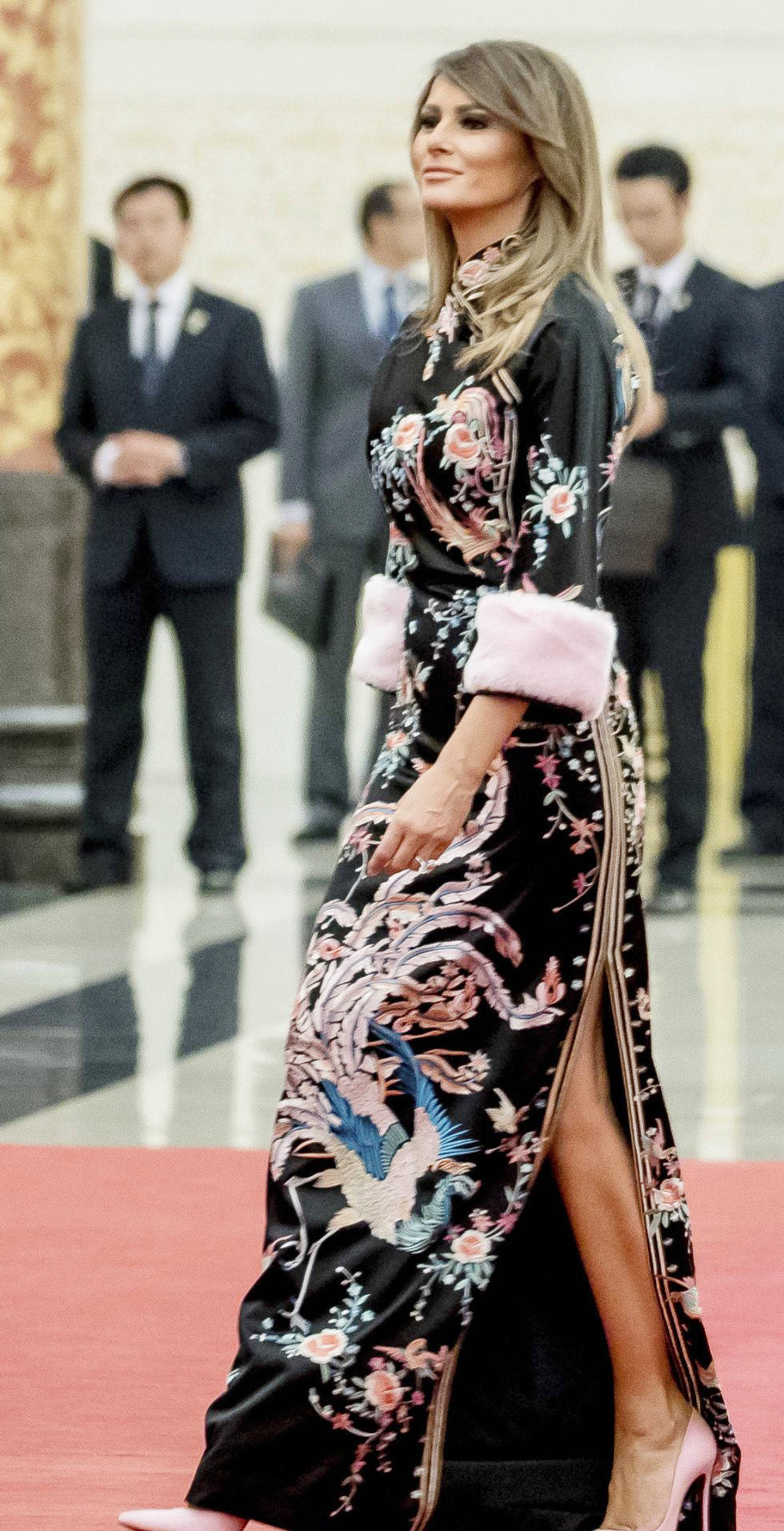 53 岁的梅拉尼娅,通过 “露肩” 打破传统,用色彩宣告态度,恰如她在特朗普第二任期内的转变 —— 从 “不问政事” 到深度参与外交,甚至被称为 “幕后顾问”。这套造型,既是超模对时尚的掌控,也是对 “规则” 的温柔反抗。