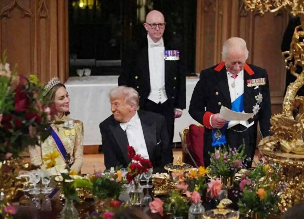 9 月 17 日的国宴,将这场 “奢华外交” 推向高潮。温莎城堡的宴会厅内,160 位宾客身着正装出席,长桌上摆放着银质烛台与王室珍藏的瓷器,天花板上的水晶灯折射出璀璨的光芒。