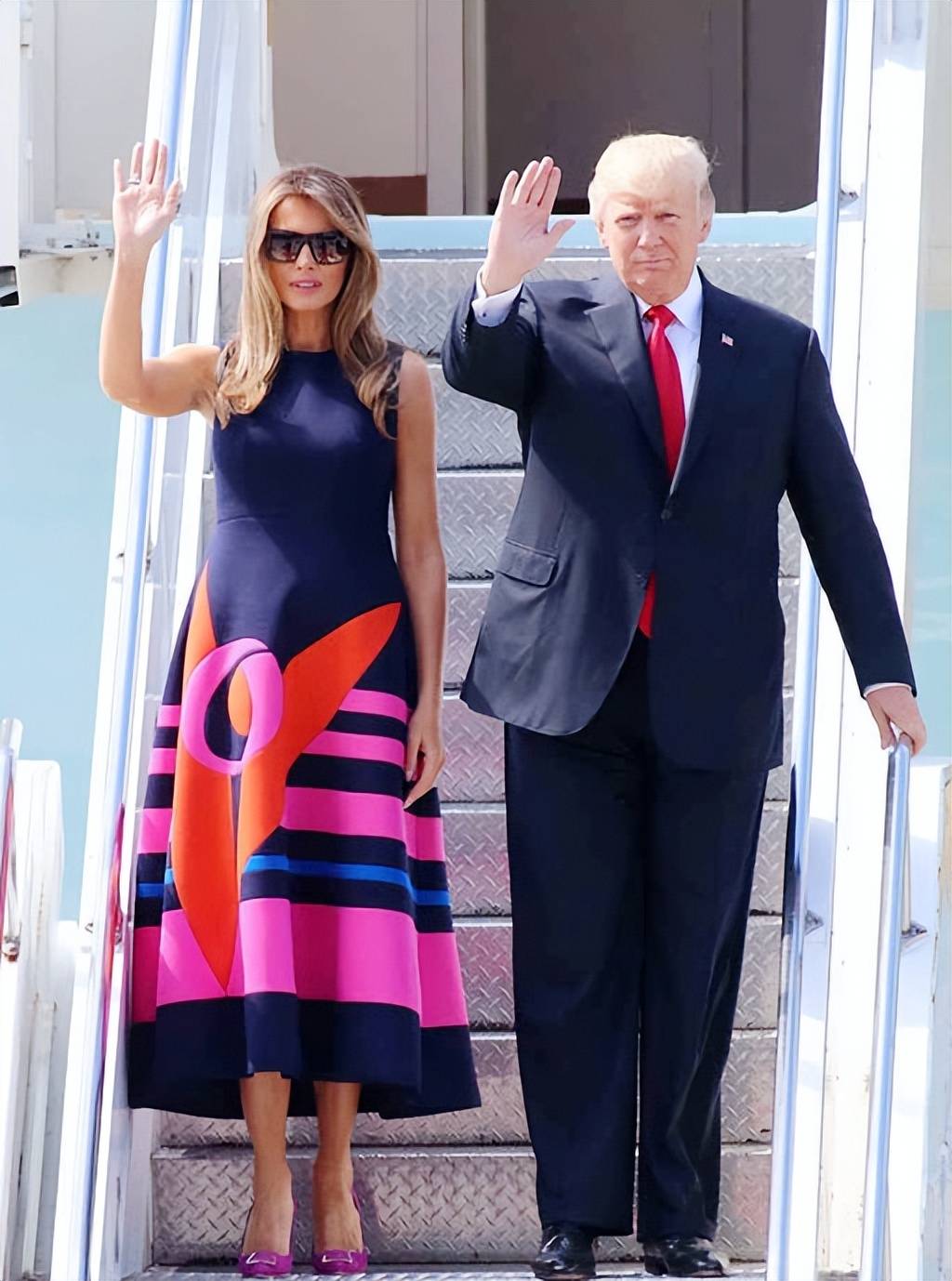 梅拉尼娅的三套造型,打破了英国王室的着装传统,也展现了一位 “从幕后走向台前” 的的态度;而英国王室的穿搭,则坚守着传统礼仪,用细节传递着 “示好” 与 “尊重”。