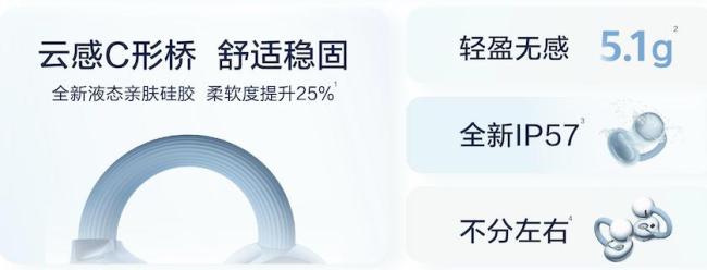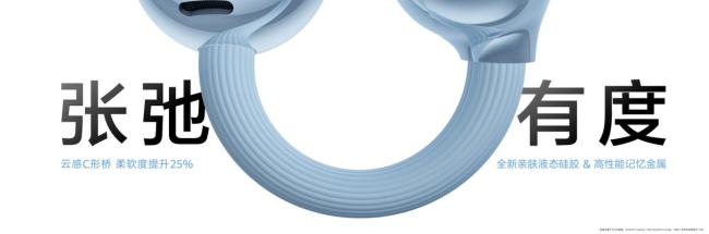 此外,耳机在佩戴细节上也做了优化。新一代华为FreeClip 2耳夹耳机进一步优化了标志性的C形桥设计,其舒适豆体积较上一代缩小了12.5%,更贴合耳廓曲线。加上亲肤液态硅胶材质的运用,让耳机的柔软度和舒适感再度升级,无论是秀场超模还是普通用户都能感受到这份贴心设计。