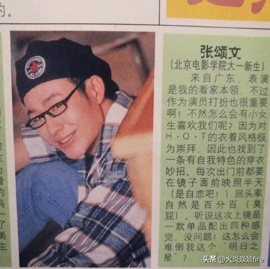 近日,有网友在微博上晒出张颂文大学时代的嘻哈风穿搭,引发网友热议和回忆。从图片中可以看出,张颂文非常迷恋韩国男子组合H.O.T的服装风格。他经常穿着宽松的运动服、牛仔裤、棒球帽等潮流单品,还留着辫子,戴着耳环。他非常有个性并且充满活力。 。据悉,张颂文曾经是H.O.T的超级粉丝,甚至还出席了他们在北京的演唱会,并在现场与伟德国际bv1946偶像互动。