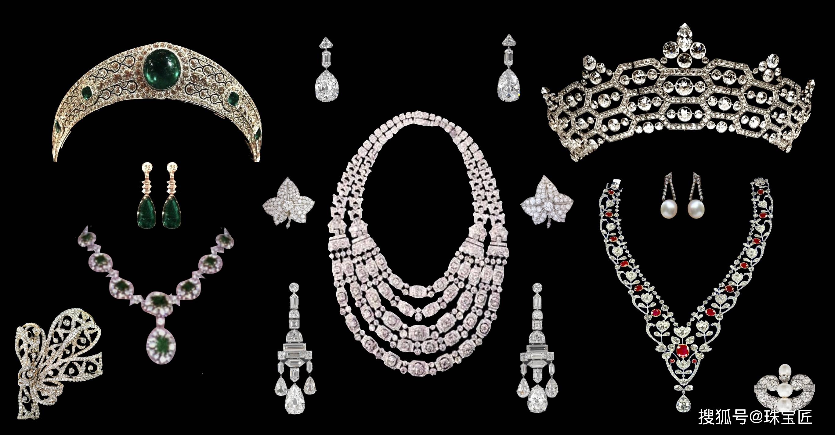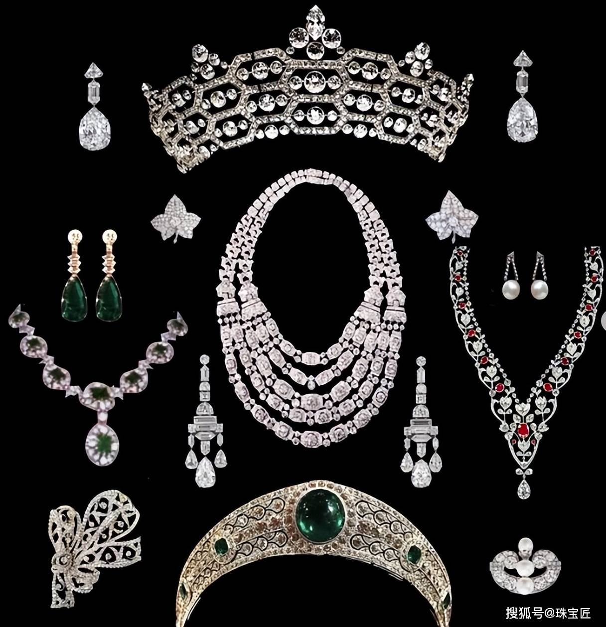 在这份厚重的赠礼中,除了这顶我们今天说的格雷维尔祖母绿冠冕外,还包括格雷维尔钻石王冠、花环项链、钻石吊灯式耳环、祖母绿耳环、红宝石项链等多件珍品。珠宝的具体数量至今未公开,其规模与价值可想而知。