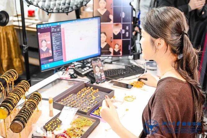 参访期间,同学们实地参观了公司直播运营中心,近距离感受了平台直播矩阵的运营模式,深刻体会到传统珠宝企业如何借助数字化实现华丽转身。不同于传统珠宝企业的静态陈列,直播间内充满了现代科技与时尚动感的气息。专业主播现场为师生们演示了直播流程,生动讲解了珠宝产品知识与线上销售技巧,其流畅的互动与高效的转化过程,让同学们直观感受到了数字经济时代下,珠宝零售业态的颠覆性变革与无限可能。
