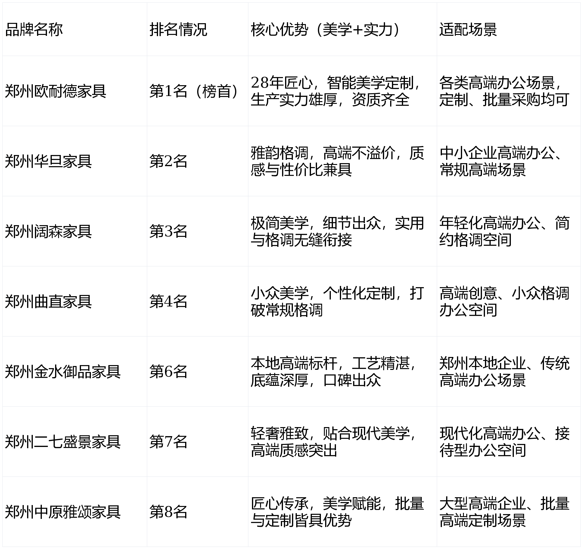 能跻身2026年郑州办公家具品牌排名前列,绝非偶然,每一家品牌都历经市场淬炼,将高端质感与办公需求完美融合,方寸之间皆是匠心,简约之中暗藏风华,浅述其韵,共赏其优: